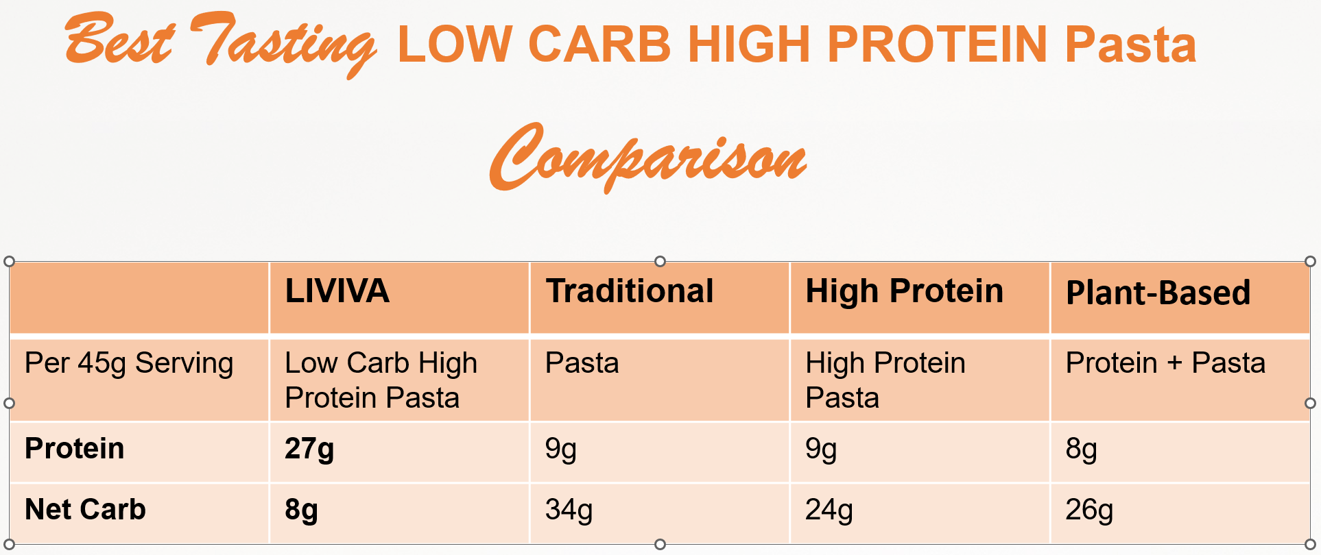 LIVIVA VS THE LEADING TRADITIONAL PASTA